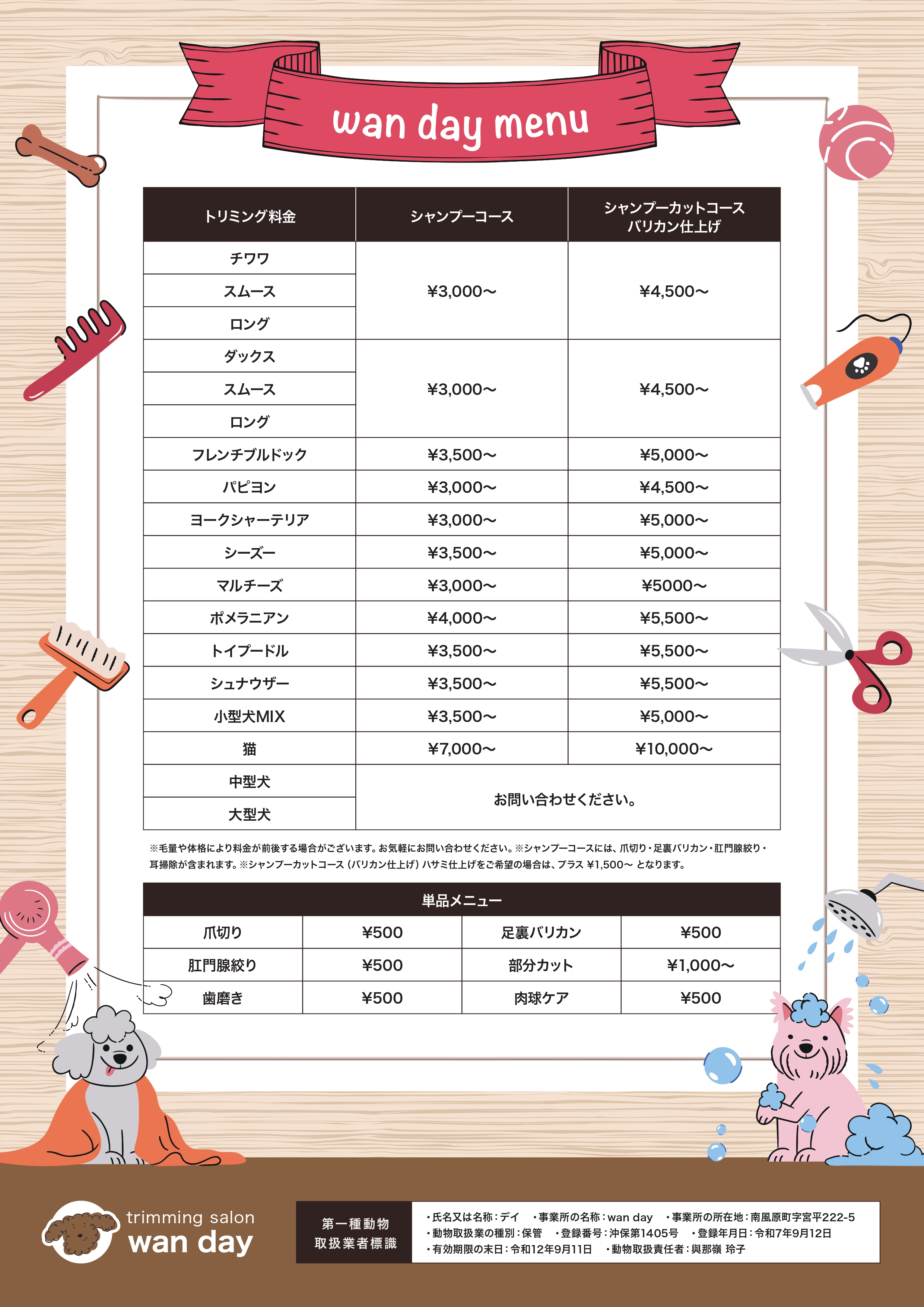 wan dayは動物看護師のいるトリミングサロン です!
